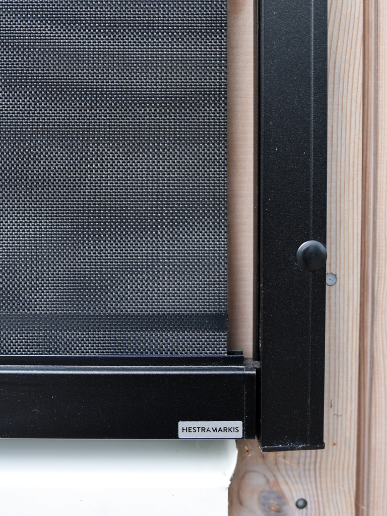 Vertikalmarkis Hestra Olle manövreras med invändigt bandreglage som standard.