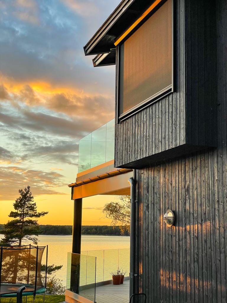 Vertikalmarkisen skapar en harmonisk innermiljö med silande effekt av solljuset samtidigt som den behåller utsikten.