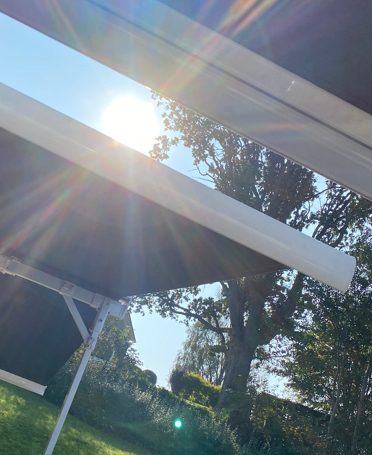 Markisen ger ett mycket gott skydd mot UV-strålning, värme och bländning. Den skapar dessutom en trivsam miljö och ett skydd att samlas under när solen ligger på.