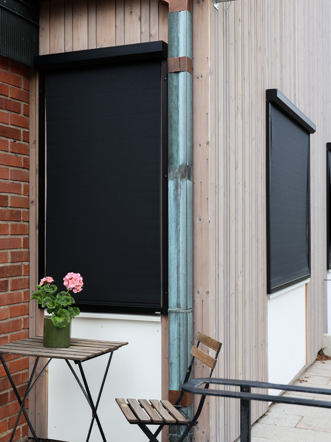 Vertikalmarkisen löper längs med fasaden och blir därmed jämförbar med en invändig rullgardin – men på utsidan. Dukarna är ljus- och väderbeständiga och finns i ett flertal varianter, bland annat genomsiktliga.